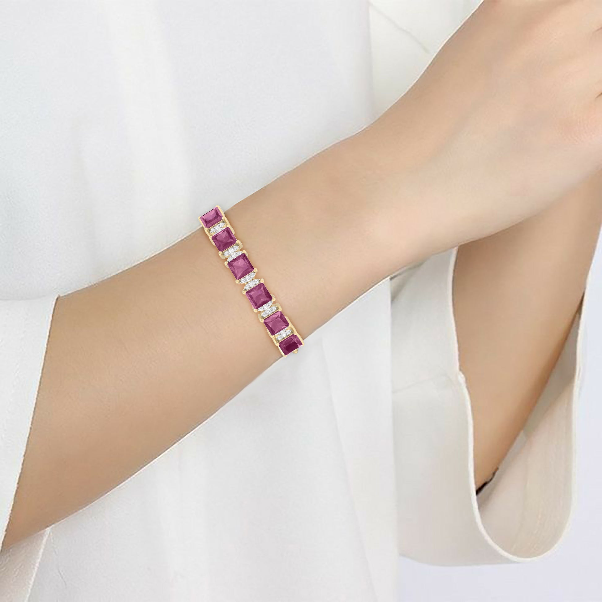 Glass Filled Ruby Slider Bracelet with White Diamond in 18Kt Gold 5.95cts
