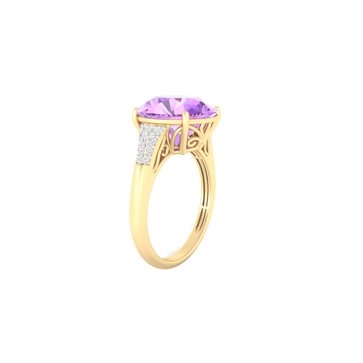 Crafted in 18KT Gold, this elegant ring features a 5.44cts Pink Amethyst, beautifully highlighted with natural white diamonds. The soft pink tones of the gemstone exude femininity and grace, while the diamonds add timeless brilliance. Perfect for statement wear or special occasions, this exquisite ring blends luxury, sophistication, and individuality making it a cherished addition to any jewelry collection.