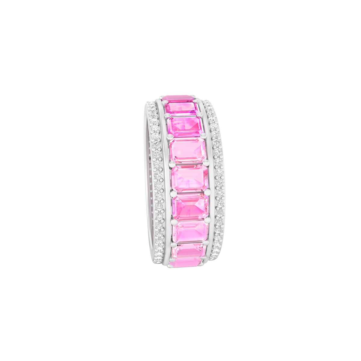 Pink Sapphire Ring with White Diamond in 14Kt White Gold 6.33cts