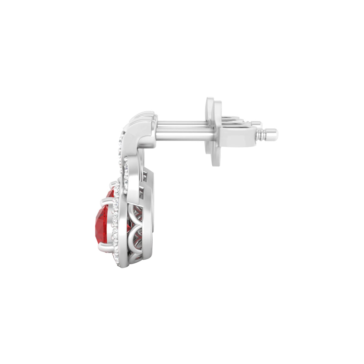 Red Apatite Stud Earrings with White Diamond in 18Kt White Gold 0.85cts