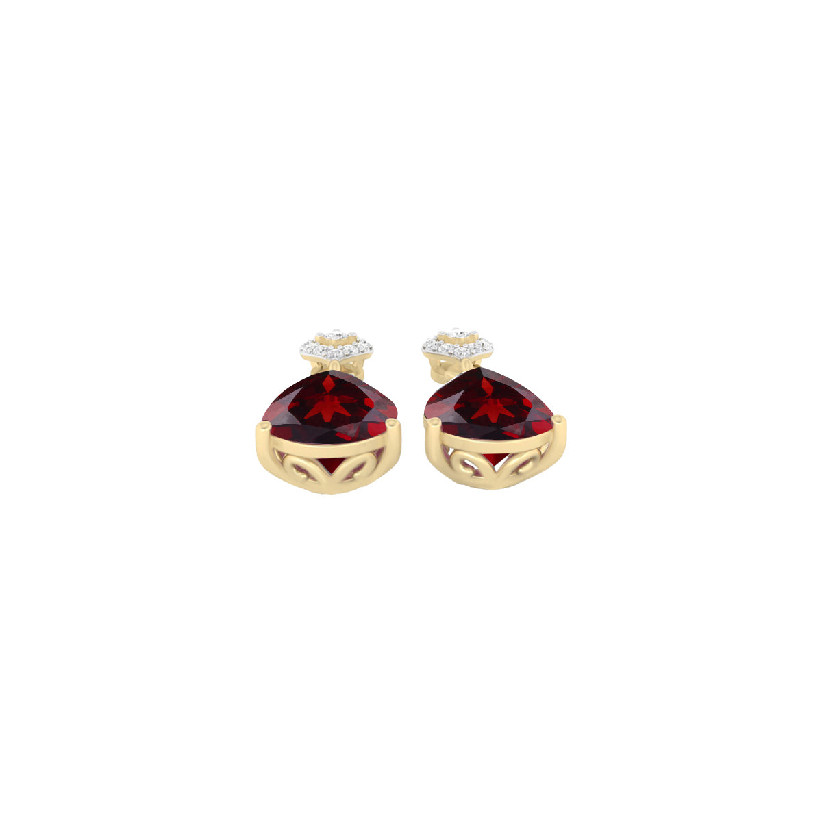 Red Garnet Earrings with White Diamond in 18Kt Gold 3.76cts