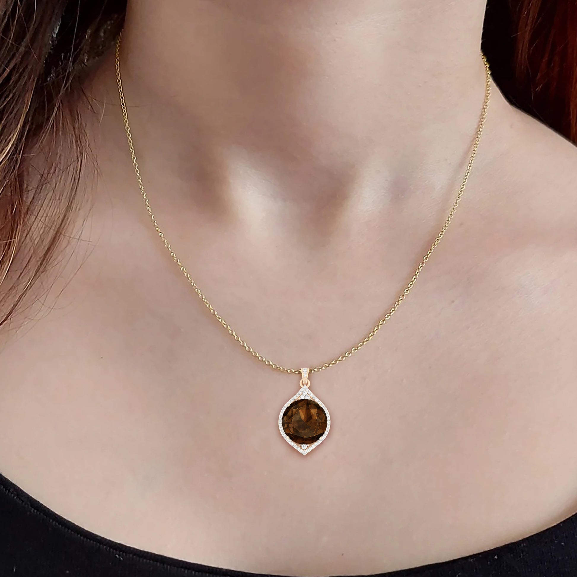 Smokey Quartz & White Diamond 18Kt Gold Pendant 12.06cts