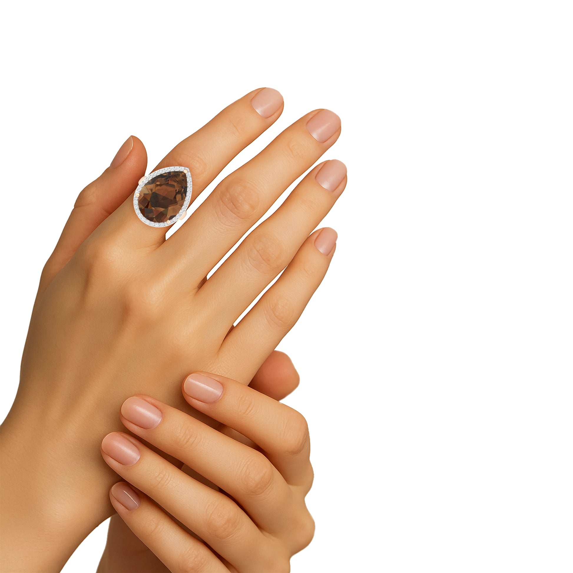 Smokey Quartz Ring with White Diamond in 18Kt Gold 15.20cts