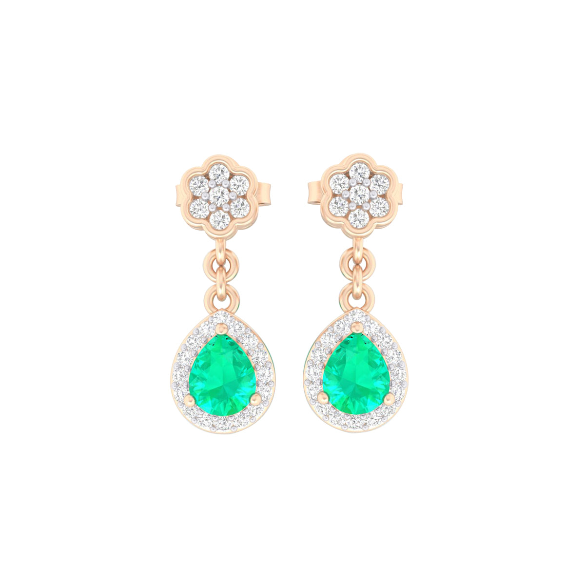 Zambian Emerald Drop Earrings with White Diamond in 18Kt Gold 0.85cts